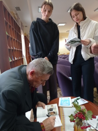 Пан Володимир ділився з учасниками зустрічі особистими спостереженнями, спогадами, переживаннями. Він читав вірші, що оспівують нашу Батьківщину, її чарівну природу, батьківську любов, кохання…