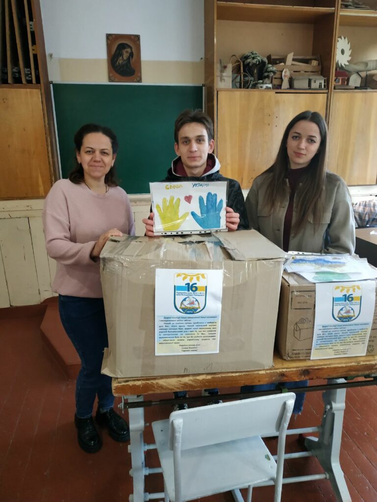 У школі №16 також малювали малюнки і роблять заготовки для окопних свічок, зокрема учні наповнюють порожні бляшанки картоном і передають нашим волонтерам для заливання воском або парафіном. Ми щиро дякуємо за патріотичне виховання молоді директорці цього закладу Руслані Базуновій, її заступницям Марії Балящук, Ларисі Бугері, Тетяні Рудик і вчительці трудового навчання Тетяні Маланчук.