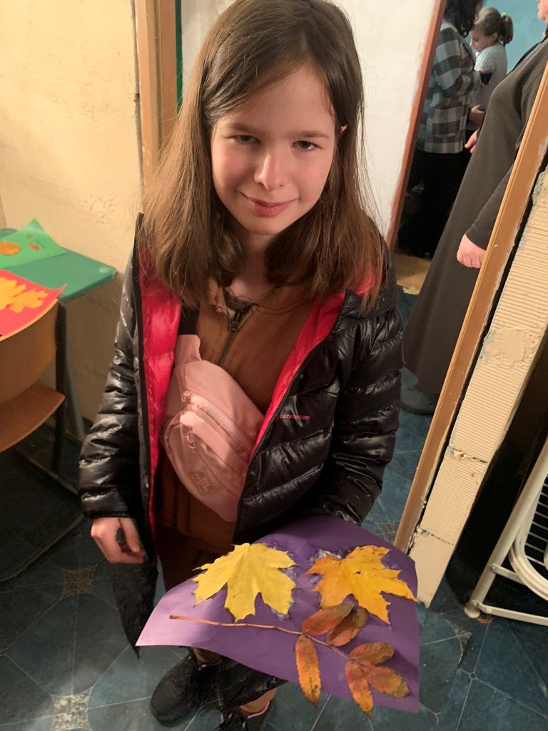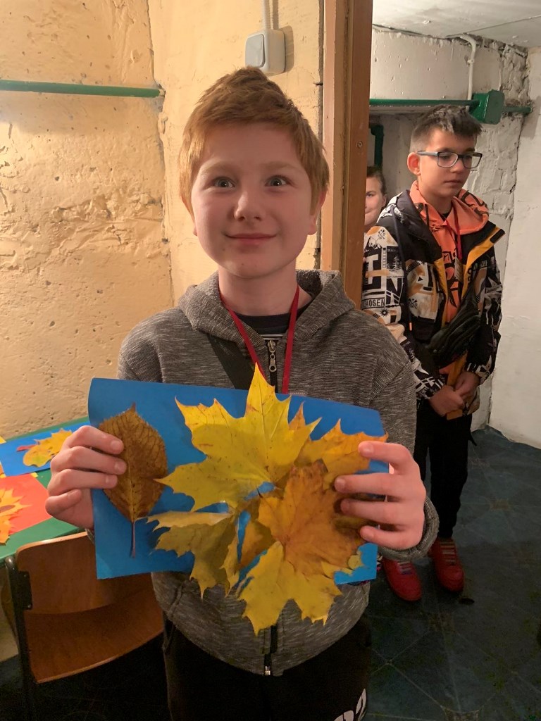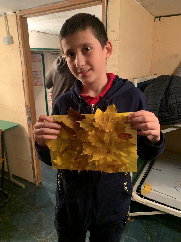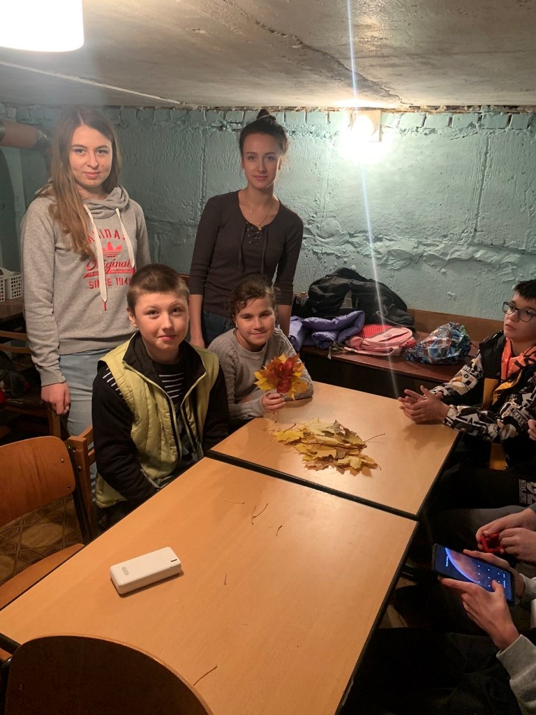 У зв’язку з повітряною тривого майбутні медики разом зі своїми учнями перемістили до сховища, яке обладнане партами та місцями для сидіння, і там продовжили заняття. Діти разом зі студентками створили 18 картин за допомогою листя, кольорового паперу, клею та фломастерів і прикрасили сховище осінньою фотозоною. Емоційний стан дітей помітно став кращим. Діти розважились і відволіклись. Сьогодні вкрай важливо підтримувати гарний настрій. Також посмакували печивом з соком та зробили багато світлин на згадку. Дітям було передано засоби канцелярії.