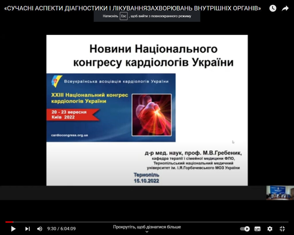 Пленарне засідання розпочав д-р мед. наук, професор, завідувач кафедри терапії та сімейної медицини ТНМУ Гребеник Мар’ян Васильович з доповіддю “Новини ХХІІІ національного конгресу кардіологів України”, де представив актуальну інформацію щодо найновіших стандартів лікування кардіологічних хворих, зокрема зупинився на питаннях використання антикоагулянтів та антиагреантів у серцево-судинних хворих при підготовці до некардіального хірургічного лікування та акцентував увагу на питаннях кардіоонкологічної патології, зокрема на запобіганні кардіотоксичності в онкології.