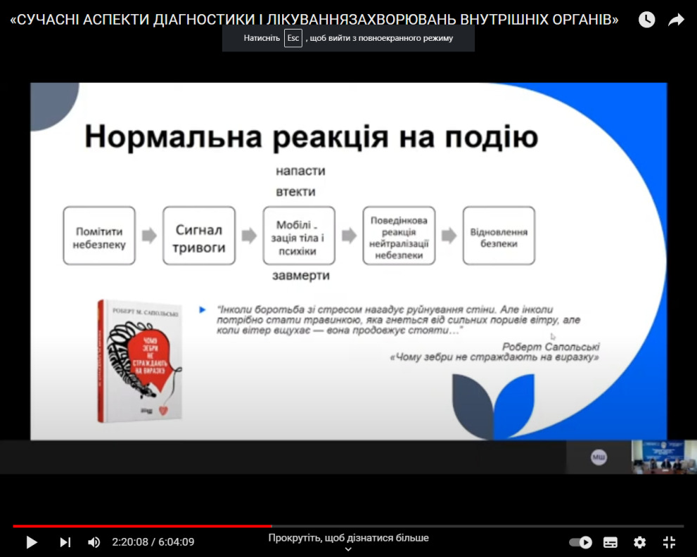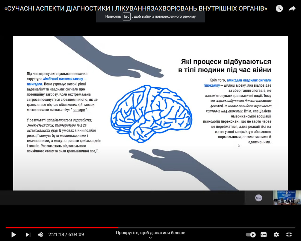 Багато доповідей на пленарному засіданні викликало великий практичний інтерес у площині ведення пацієнтів у сучасних реаліях воєнних дій та обтяженої епідемічної ситуації. Зокрема, торкнулись проблеми ведення пацієнтів з психологічною травмою в умовах війни у доповіді “Психологічна травма та її вплив на психо-соматичні порушення”, яку представила доктор медичних наук, професорка, завідувачка кафедри психіатрії, наркології та медичної психології ТНМУ Венгер Олена Петрівна.
