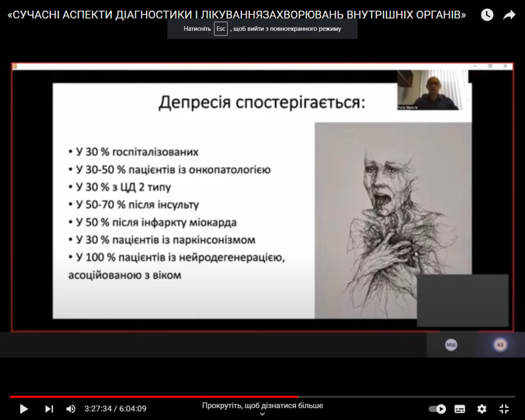 Доктор медичних наук, процесор кафедри психіатрії, наркології та медичної психології ТНМУ Мисула Юрій Ігорович у доповіді “Пацієнт на межі компетенції терапевта та психіатра” акцентував увагу на питаннях етапності лікування хворих з невираженими ознаками депресивного розладу та можливостях немедикаментоної допомоги в подоланні тривожно депресивних станів, а також диференційованого підходу у використанні антидепресантів.