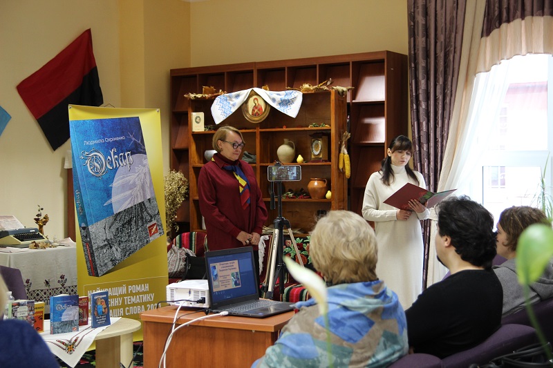 Розповідь письменниці про роман «Оскар», визнаний кращим романом на воєнну тематику у 2021 році, вразила всіх присутніх. Адже «жива» та змістовна розповідь пані Людмили про головного героя з позивним Оскар – це доля справжнього воїна-розвідника, що воює за Україну. Історія появи роману — особлива і непередбачувана. «До мене, як до волонтерки, часто звертаються військовослужбовці, — розповіла пані Людмила. — Так трапилося і цього разу. Я відкрила фейсбук і побачила повідомлення від людини в однострої: «Мені дуже потрібна ваша допомога!». Згодом з’ясувалося, що військовий звернувся до письменниці з проханням написати книжку, про його долю, службу, полон… «Я прочитала його розповідь, запропонувала пробну главу, і ми дійшли згоди, бо мене зацікавила його історія, а йому сподобався мій художній стиль і відчуття слова», — продовжує пані Людмила.