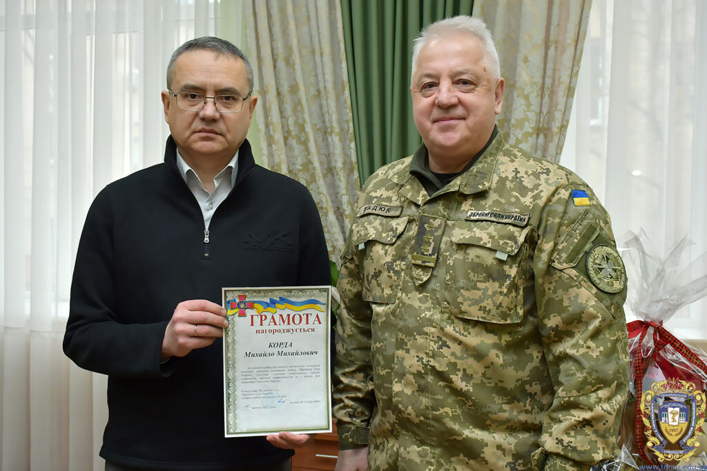 Також Михайлу Корді вручено грамоту командувача медичних Збройних сил України, генерал-майора медичної служби Тетяни Остапенко за внесок в організацію та надання медичної допомоги особовому складу ЗСУ.
