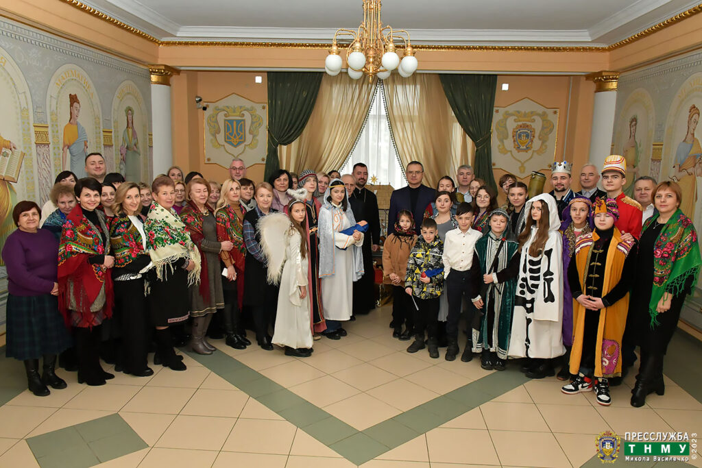 Ректор ТНМУ, професор Михайло Корда подякував колядникам парафії святого Володимира Великого за щирі вітання. Навзаєм він також побажав спокою, миру і злагоди в родинах і Україні, а Бог щоб дарував талановитим юним учасникам вертепу світле майбутнє і добру долю у житті.