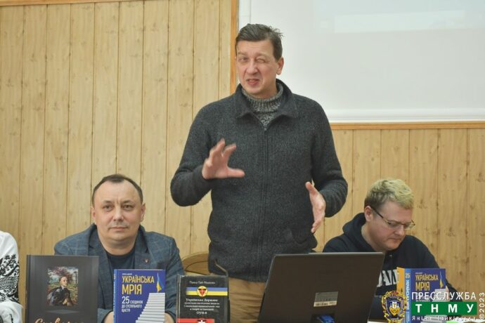 На запрошення ГО «Інститут дослідження національної спадщини» до ТНМУ завітали, щоб поділитися своїми думками та напрацюваннями, директор видавництва «Саміт-Книга» Ігор Степурін, екс-віце-прем’єр України з гуманітарних питань, громадський діяч, політик Микола Томенко, депутат Верховної Ради України 6-го і 7-го скликання, журналіст, телеведучий, громадський та політичний діяч Олесь Доній, історик Леонід Чупрій , а також академік , основоположник консервативного руху в Україні Павло Гай-Нижник.
