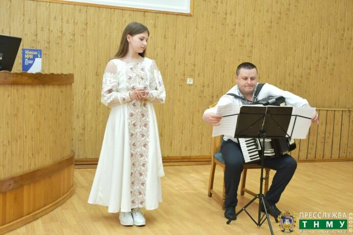Вчителька української літератури ЗОШ №13 імені Андрія Юркевича Ірина Лилик і учениця 9 класу Уляна Кобліанідзе представили невелику мініатюру про Григорія Сковороду.