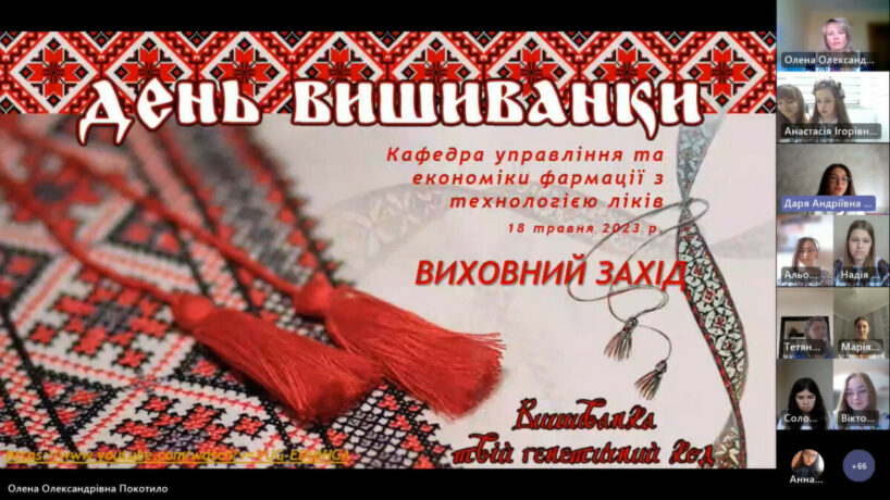 Щорічно у третій четвер травня Україна, а зараз вже увесь світ, відзначають Всесвітній день вишиванки. Кафедра управління та економіки фармації з технології ліків ТНМУ 18 травня 2023 року також долучилася до святкування цього дня з використанням сучасних онлайн-технологій.