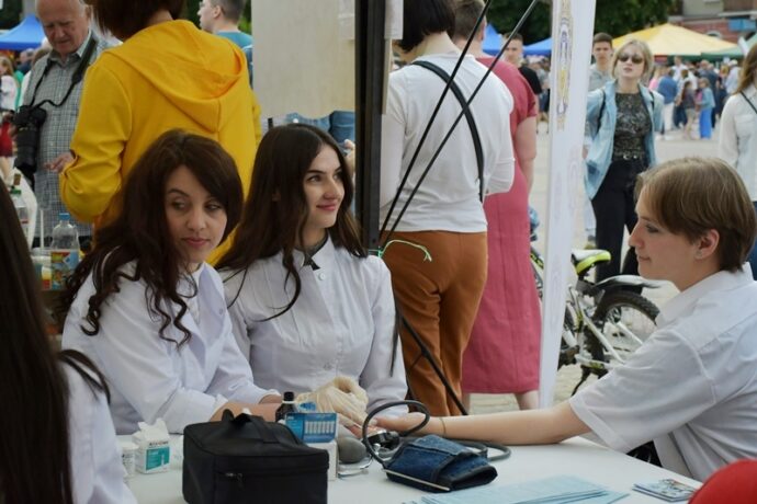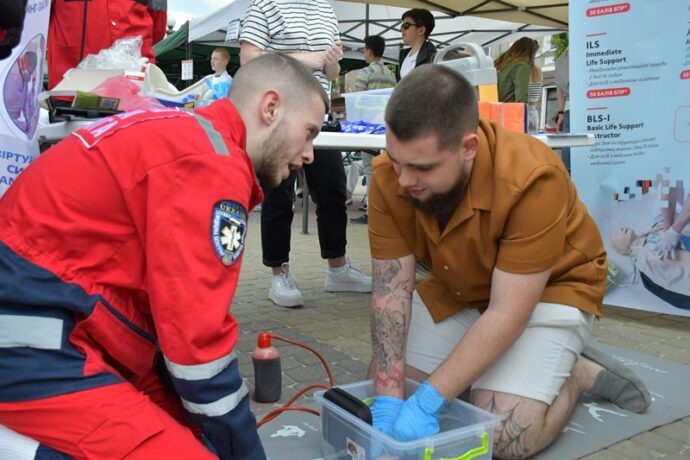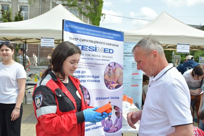 Відвідувачі юрмилися біля наметів з манекенами для освоєння навичок з домедичної допомоги. Цю станцію усіма необхідними засобами та тренажерами обладнали представники центру симуляційного навчання ТНМУ. Володіння навичками надання домедичної допомоги є актуальними в мирний і воєнний часи. Асистент кафедри екстреної та симуляційної медицини Роман Гук, а також студенти спеціальності «Парамедик» Таня Савчук, Яна Ганзіна, Андрій Ониськів, Станіслав Марценюк, Ліза Перейма, Ілона Пірко, Назар Корнелюк навчали бажаючих зупиняти критичні масивні кровотечі, правильно накладати турнікет, робити серцево-легеневу реанімацію.