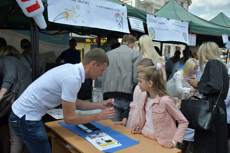 Стенди, активності та експозиції нашого закладу завжди викликають зацікавлення у містян. Впадало у вічі, що сьогодні на піку поваги до професії навіть молодші школярі охоче слухали інструкторів (студентів-парамедиків і представників загону швидкого реагування «Червоного Хреста», який складається зі студентів ТНМУ), спостерігали за різними хімічними реакціями, вчилися робити елементарні дослідити і спробували себе в ролі стоматологів.