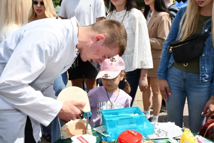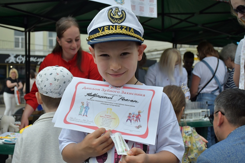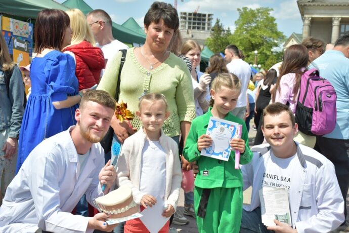 Представники кафедри дитячої стоматології навчали дітей правильному чищенню зубів та догляду за ротовою порожниною.  Доцент  Оксана Видойник та асистент Юлія Змарко разом зі студентами Василем Брилюком, В‘ячеславом Полюховичем, Микитою Бураковим навчали правильно тримати та рухати щіточкою, дарували подаруночки та охоче відповідали на усі запитання. Зрозуміло, що після такого спілкування маленькі пацієнти уже не боятимуться стоматологічних кабінетів. Приємно, що наші студенти також відпрацьовують навички спілкування з дорослими та дітьми, опановуючи майбутню професію.