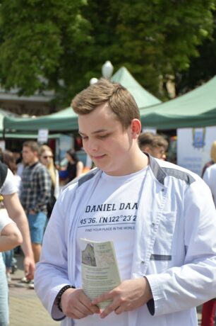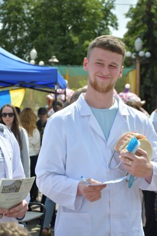 Доценти кафедри ортопедичної стоматології Тетяна Дзезюх, Анна Воробець разом зі студентами Арсеном Бордійчуком та Віталієм Кравцем розповідали про способи заміщення дефектів зубних рядів при відсутності зубів та наслідки їх несвоєчасного заміщення, а також давали всім бажаючим знімати відбитки щелепи на фантомах.