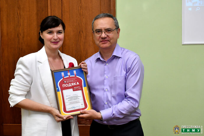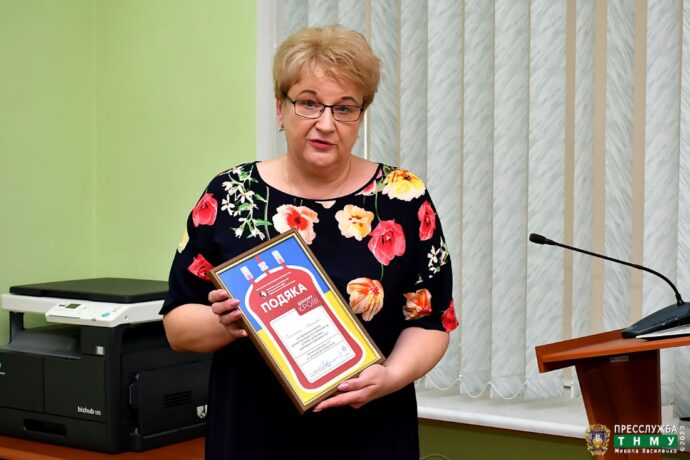 Перед початком засідання ректором, проф. М.М. Кордою вручено подячні грамоти активним донорам університету: