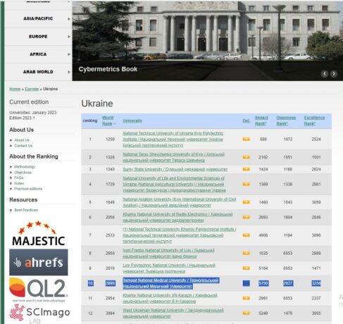 ТНМУ займає перше місце серед медичних вишів України у літній версії рейтингу Webometrics