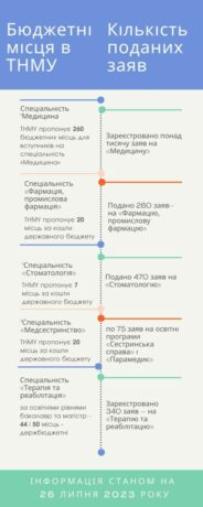 Усього ж вступники подали до ТНМУ понад 3000 заяв. Це набагато більше, ніж було подано заяв у минулому році, хоч останній день подання – 31 липня, 18:00. Також це – перший день подання заяв на магістерські програми: «Громадське здоров’я», «Медсестринство», «Терапію та реабілітацію».