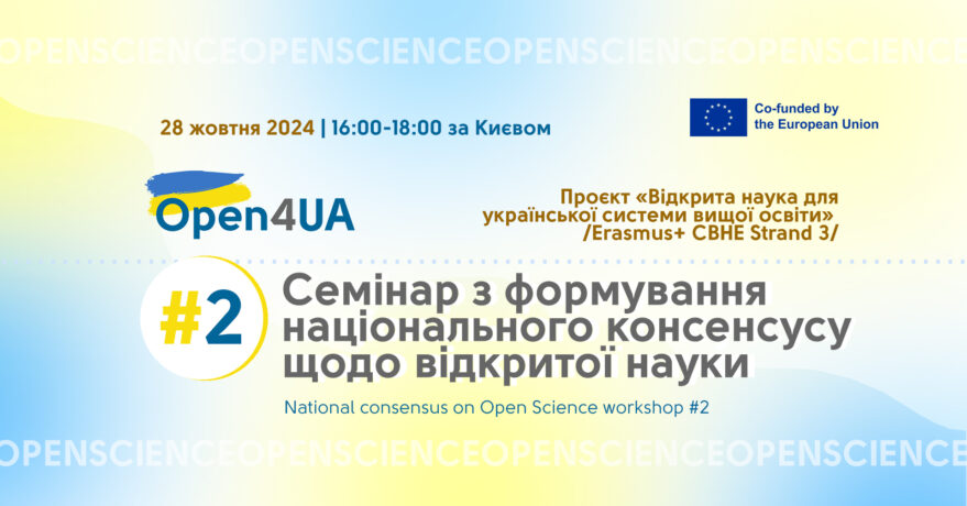 У рамках другого семінару команда Open4UA (https://lpnu.ua/open4ua) презентує результати аналізу національного законодавства на предмет його відповідності європейським стандартам у галузі відкритої науки і оцінювання досліджень, а також проєкт Закону України, який має на меті розвиток відкритої науки. Окрім того, поговоримо про інструментарій, призначений для впровадження ідей та практик відкритої науки на інституційному рівні та інші результати проєкту, які є зараз у процесі розроблення.