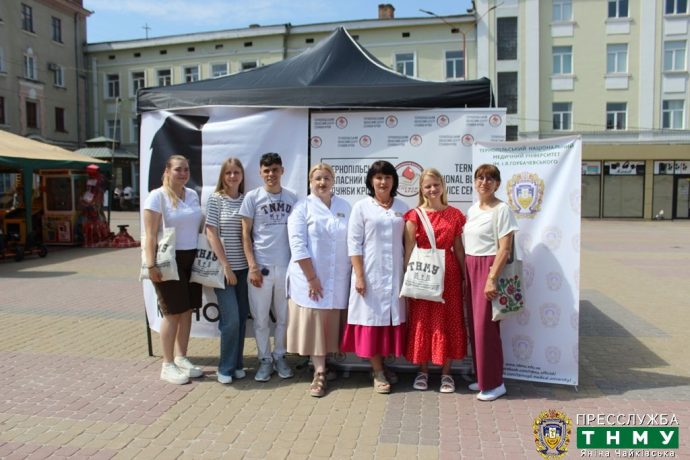 Досвідчені фахівці ТОЦСК Ольга Коркіна та Леся Щур проводили експрес-визначення, а волонтери – студенти ТНМУ Вікторія Мірошник, Софія Берегуляк, Юлія Хархаліс, Назарій Крулик, Олександр Хома та Анатолій Сакало – розповідали про важливість донорства та запрошували на колективну донацію у День міста.