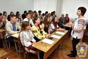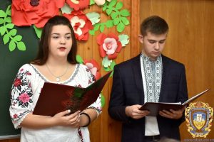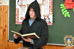 Ведучі – студенти Анна Кіндрат і Назарій Гуральчук – поетично привітали присутніх зі святом, нагадавши, що сила слова безмежна, бо у ньому прихована неосяжна душа народу. Як зазначили ведучі, мова стояла на чатах біля вівтаря Національного Храму і не впускала туди злого духа скверноти, ганьби. І множила край веселими талантами, невмирущим вогнем пісень, і наповнювала душі Божим сяйвом золотисто – небесним. Ліричні вірші «Рідна мова» та «Українці мої» емоційно прочитав студент Владислав Бондар. Він також артистично виконав роль літописця Нестора – першого історика Київської Русі, мислителя, вченого, ченця Києво-Печерського монастиря. Дослідники вважають, що саме з преподобного Нестора-літописця, і починається писемна українська мова.