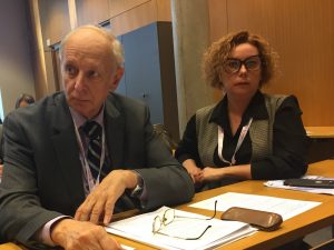 Робота першого пленарного засідання: доповідають Клаус фон Лепел, директор Міністерства науки, досліджень та гендерної рівності, м. Гамбург, Німеччина (зліва) та Паула Ліндрос, регіональний директор Програми, м. Упсала, Швеція (справа).