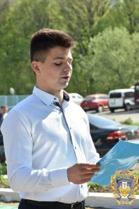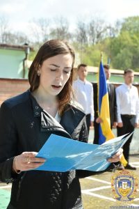 «Сьогодні у вашому житті є певна віха, яка пов’язана з прийняттям присяги на вірність своєму народові та Україні. Ця клятва є однією з найважливіших. Це те непорушне слово, ціна якого більша за життя. Скласти присягу – це усвідомити те, що з цього дня ви стаєте оборонцями нашої землі, стаєте офіцерами-медиками. Ви повинні бути готовими в будь-яку хвилину влитися в лави захисників України і виконувати свій обов’язок. Цей крок ви робите у нелегкий для нашої держави час, коли Україна зазнає агресії з боку сусідньої країни. Я бажаю, щоб вам ніколи не доводилося застосовувати свої знання, отримані під час військової підготовки, щоб над вашими головами завжди було мирне небо. Абсолютно переконаний, що в разі потреби ми і ви станемо на оборону своїх сімей і держави, як зробило багато випускників нашого університету і кафедри медицини катастроф і військової медицини.