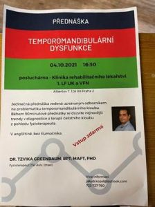 В рамках фахового стажування в Карловому університеті усі учасники програми MEDEVAC мали змогу перебувати на лекції ізраїльського професора Dr., PhD. Tzvica Greenbaum (Ізраїль, Тель- Авів) на тему: «How to manage Headache in the Musculoskeletal Practice?», в якій він розглянув застосування фізичної терапії при різних видах головного болю.