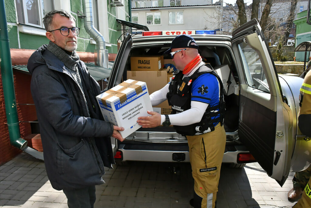 Випускник Тернопільського національного медичного університету з Польщі Станіслав Комарницький (Stanislav Komarnytskyi), який сьогодні працює лікарем Університетської лікарні у Вроцлаві, організував і передав декілька разів медикаменти та засоби лікарського призначення до волонтерського центру ТНМУ. Останній вантаж вагою 175 кг до нашого вишу привіз Павел Гембальський (Pawel Gebalsky), який є представником пожежної служби у Любліні. До збору необхідних ліків долучилися представники української фундації та італійські лікарі-волонтери в місті Форлі.
