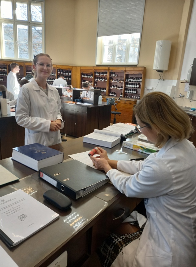 Також доцент Равлів Ю.А. мала змогу побувати на практичних заняттях студентів з предмету «Технологія лікарських засобів».