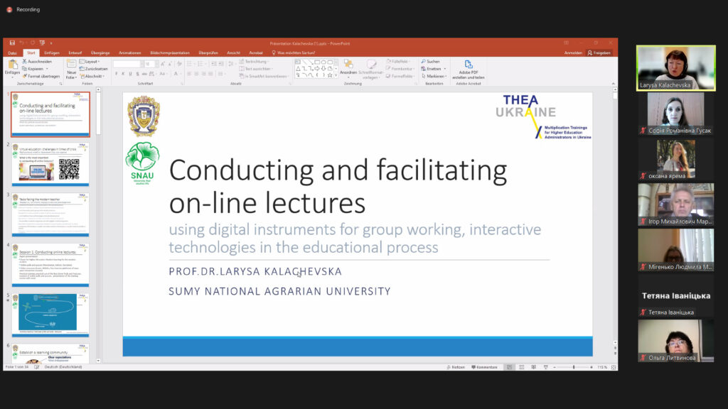 Після чого у співпраці з Ларисою Калачевською, професоркою кафедри публічного управління та адміністрування Сумського національного аграрного університету та Іриною Боровик, доценткою кафедри терапії і сімейної медицини ТНМУ підготували та провели дводенний тренінг для викладачів університету у гібридному форматі.