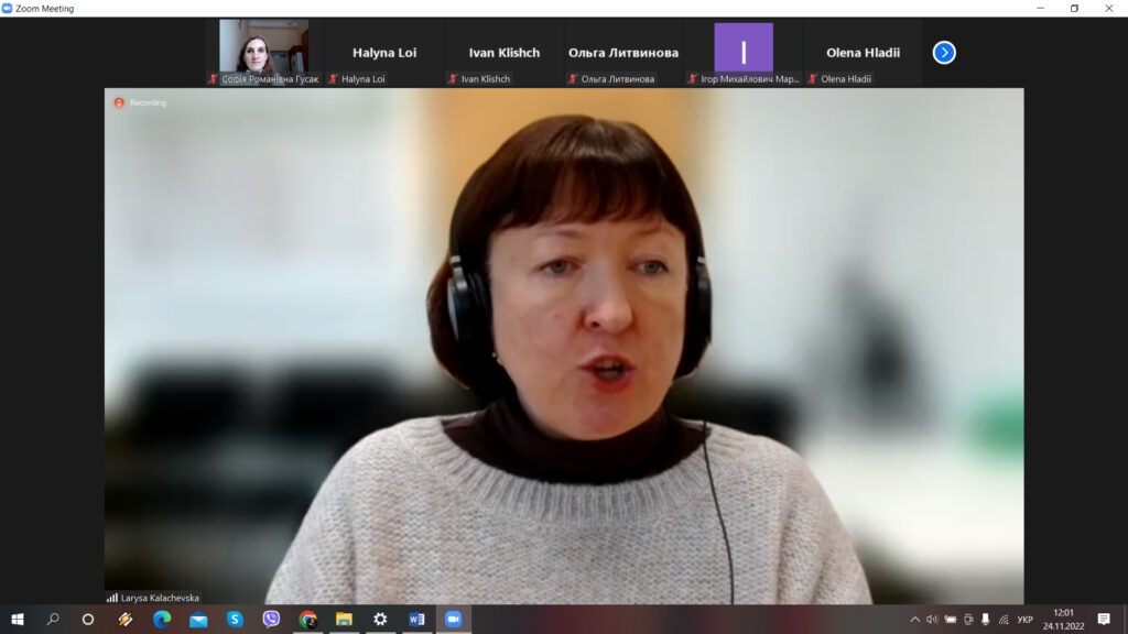 Наступного дня тренінг проводився на платформі Zoom, де професор Лариса Калачевська детально розповіла про всі можливості роботи на даній платформі і викладачі мали змогу попрактикувати всі її можливості.