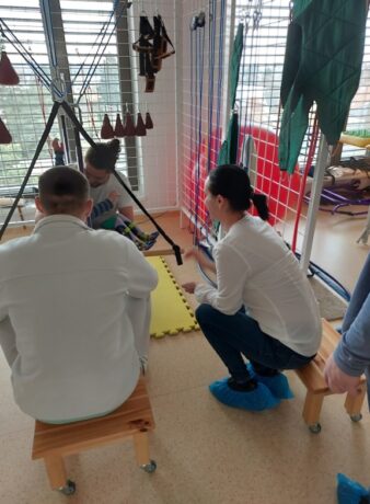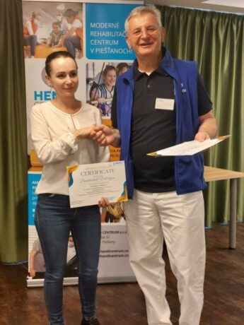 Під час фахового стажування в реабілітаційному центрі Hendi (м. Пьєштяни, Словаччина) медичний директор Мар’ян Маркеч, головні фізичні терапевти відділення дітей старшого та дорослого віку Андрій Тараба та Любош Транджік цього ж закладу ознайомили учасників з роботою реабілітаційного центру Hendi. Фізичні терапевти ознайомили з методами реабілітації дітей з ДЦП, порушеннями м’язового тонусу, аутизмом у поєднанні з затримкою фізичного розвитку, порушеннями діяльності опорно-рухового апарату, які запроваджені в реабілітаційному центрі Hendi для неврологічних та ортопедичних пацієнтів. Окрім цього, спеціаліст по роботі з підвісною системою Юрай Ноздровицький ознайомив учасників з роботою підвісної системи в цьому центрі, яку також використовують для реабілітації дітей у разі порушень діяльності опорно-рухового апарату.