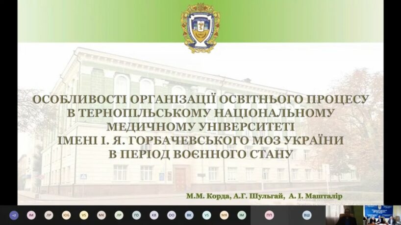 Пленарне засідання розпочалося з доповіді «Організація освітнього процесу в Тернопільському національному медичному університеті імені І.Горбачевського Міністерства охорони здоров’я України в період запровадження воєнного стану», яку представив керівник навчального відділу ТНМУ Андрій Машталір.
