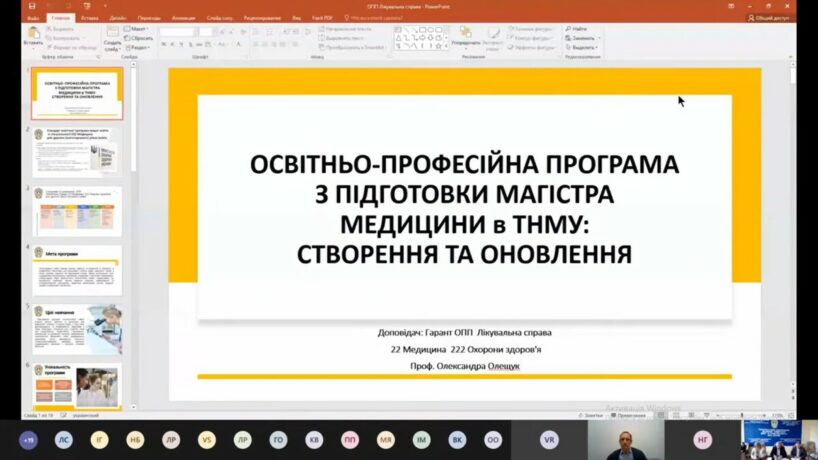 Напрацювання колективу авторів ТНМУ (Шульгай А. Г., Федонюк Л. Я., Лихацький П. Г., Кучер С. В.) представила Олександра Олещук у доповіді «Освітньо-професійна програма з підготовки магістра медицини в ТНМУ: створення та оновлення».