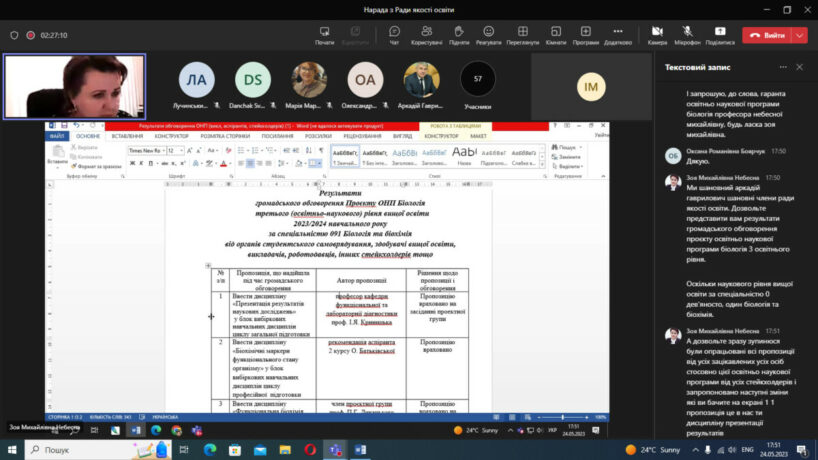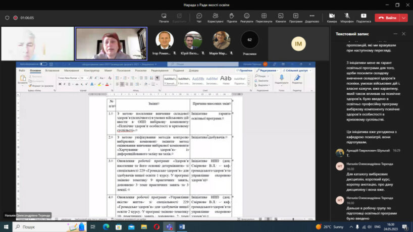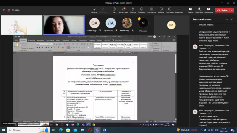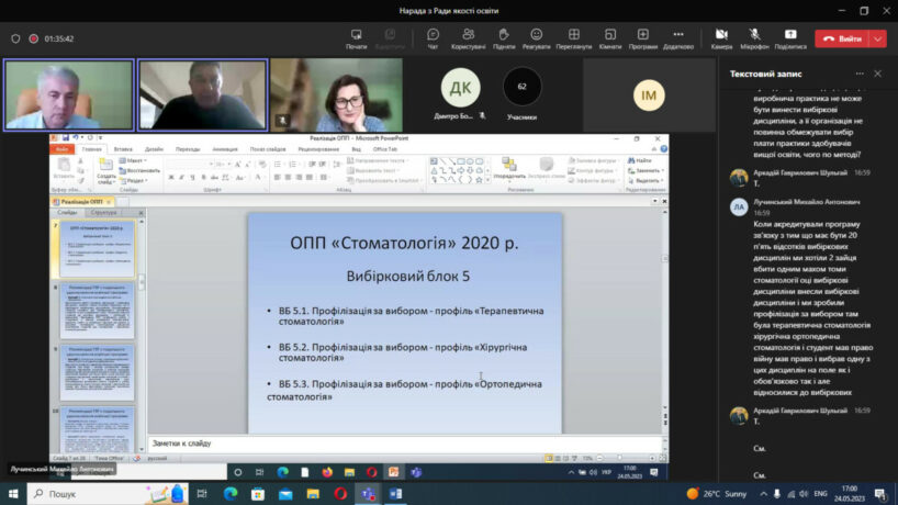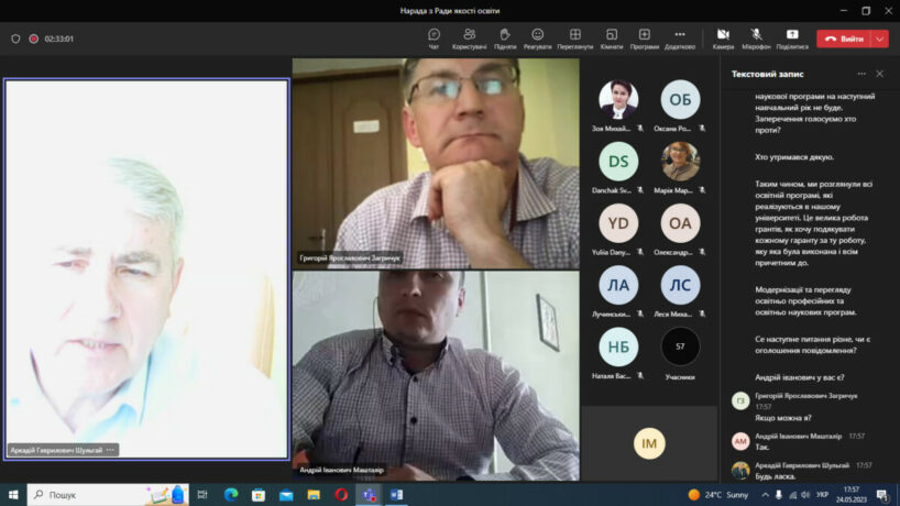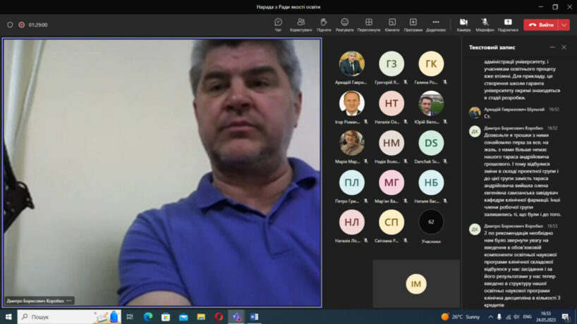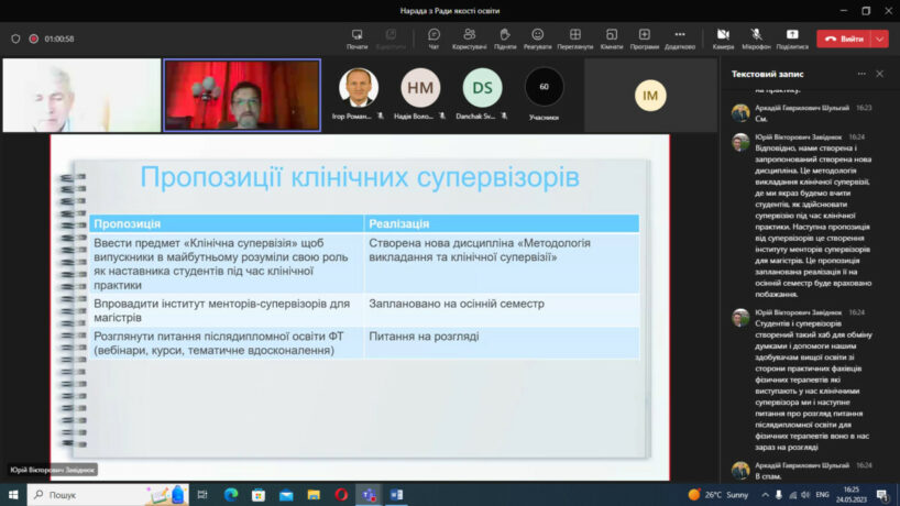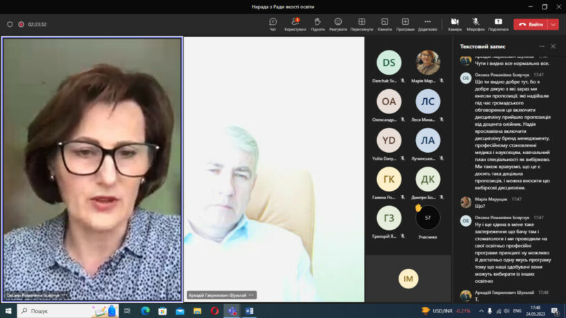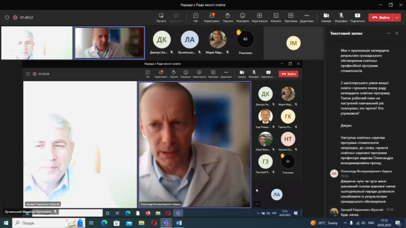У відповідності до плану роботи 24 травня 2023 року в дистанційному режимі на платформі Microsoft Teams відбулося чергове засідання Ради із забезпечення якості вищої освіти Тернопільського національного медичного університету імені І.Я.Горбачевського МОЗ України. Одним із основних питань порядку денного був розгляд результатів громадського обговорення освітньо-професійних та освітньо-наукових програм, за якими здійснюється підготовка здобувачів в університеті за першим (бакалаврським), другим (магістерським) та третім (освітньо-науковим) рівнями вищої освіти.