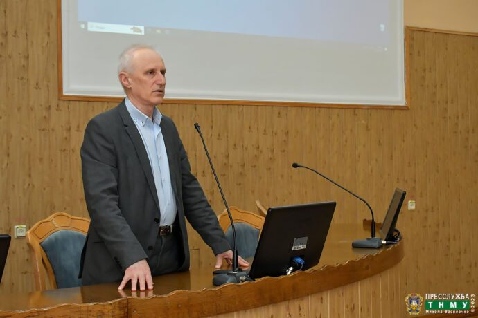 Дмитро Ляшов, який представляв наших партнерів Акконський університет прикладних наук (Берлін, Німеччина), доповів про спільний проєкт «Сприяння охороні здоров’я в Україні в умовах воєнного часу. Навчання, медична освіта та професійні обмін через подкасти та на місці».Професор Олександр Яшан розповів про досвід надання допомоги нашим воїнам «Хірургічна реабілітація хворих після акубаротравми, поєднаної з перфоративним середнім отитом».