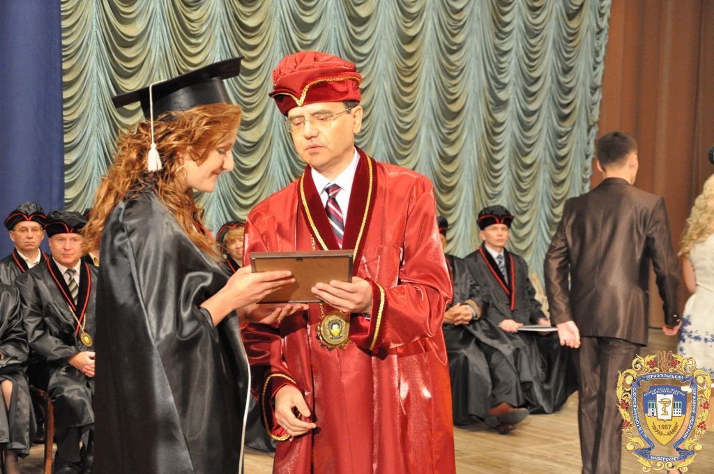 Наказ про присвоєння звання лікаря та лікаря-лаборанта зачитав доцент Михайло Фурдела. Ті, хто впродовж навчального процесу продемонстрував відмінні знання, отримали дипломи з відзнакою з рук ректора ТДМУ, професора Михайла Корди. Вітаємо Христину Дуве, Костянтина Козакова, Катерину Пляшко.