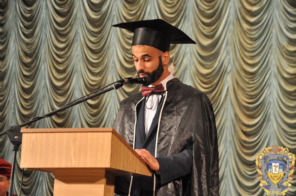 Очільник вишу англійською мовою побажав випускникам ТДМУ, які приїхали на навчання з інших країн, успіхів і професійного зростання. Він висловив сподівання, що саме вони стануть найкращими послами доброї волі нашого університету та України у своїх державах.