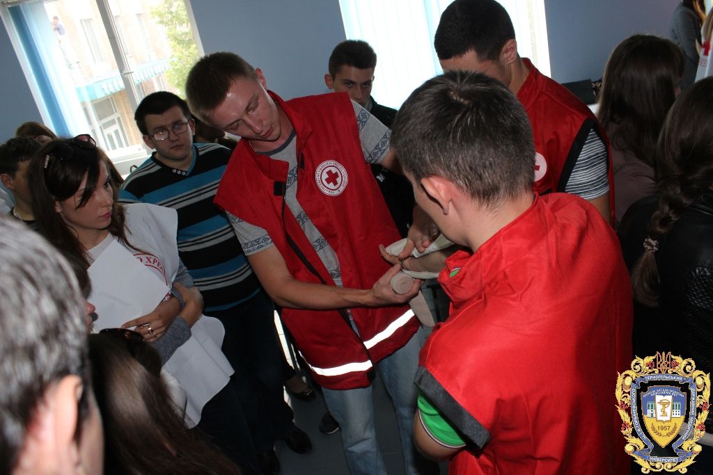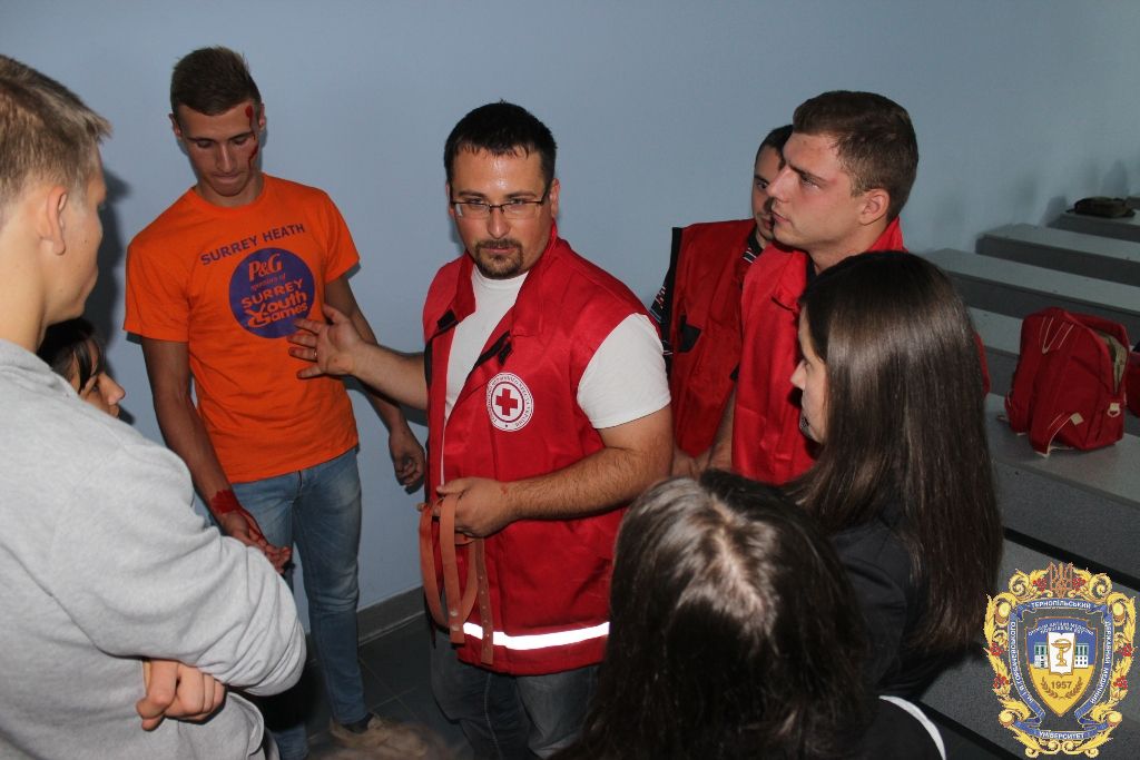 «Наше завдання, як членів загону швидкого реагування, полягає в тому, аби брати участь у масових зібраннях людей, щоб в разі потреби швидко надати допомогу. Також під час терористичного акту чи масштабного нещасного випадку ми в епіцентрі події допомагаємо рятувати потерпілих. Сьогодні ж ми показуємо студентам елементарні ази надання першої допомоги, зокрема серцево-легеневої реанімації, накладання джгутів при кровотечах і переломах», – розповів студент ТДМУ Андрій Гвоздецький.