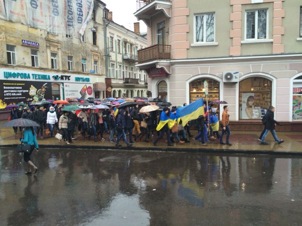 Тож, 20 листопада цього року усі студенти медуніверситету, які мали бажання відзначити другу річницю Євромайдану і вшанувати загиблих у теперішній борні за незалежність, прийшли на Театральний майдан у Тернополі. На сцені молодь встановила революційне піаніно, під супровід якого виконала гімн України та співала патріотичні пісні. До маршу також доєдналися сотні волонтерів, бійців АТО та їхні родини.