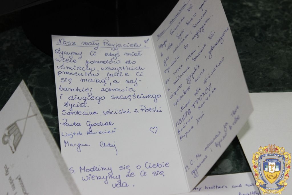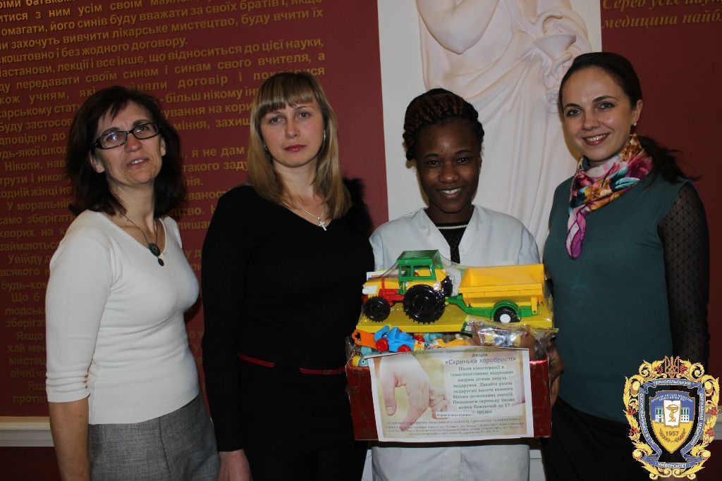 В останній день свої презенти донесли представники Асоціації студентів Гани, а також студенти ТДМУ з Польщі. Організатор проекту Тетяна Дзецюх щиро вдячна всім іноземним студентам за щирість і вміння дарувати добро, а заступнику декана факультету іноземних студентів Олені Покришко за допомогу у налагодженні комунікації з ними та у всебічному сприянні. Тетяна Ігорівна висловила подяку також директору Центру виховної роботи і культурного розвитку Ользі Яремчук та керівнику волонтерської групи Іванні Керничній.