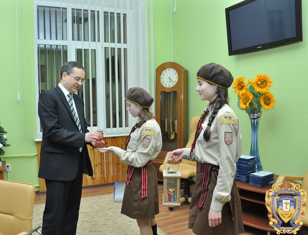 Пластуни передали Вифлеємський вогонь ректору ТДМУ