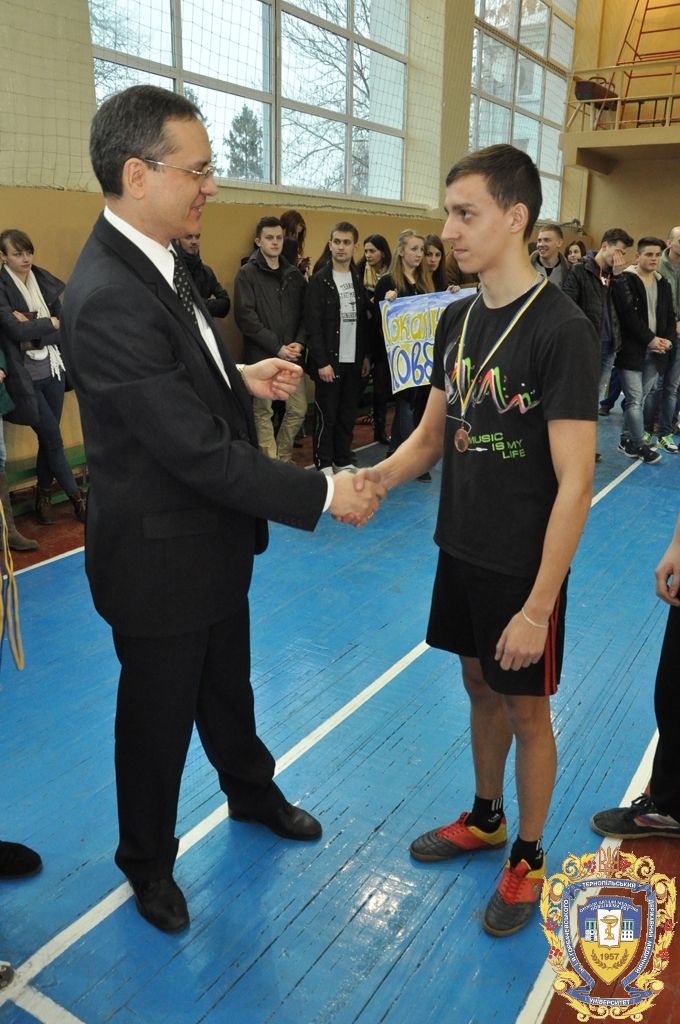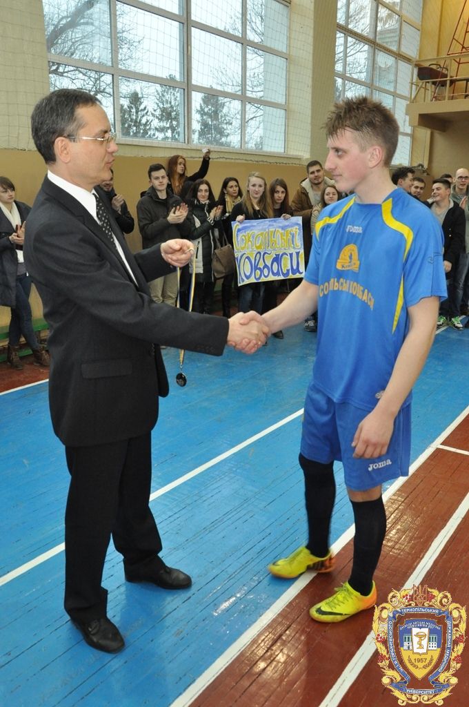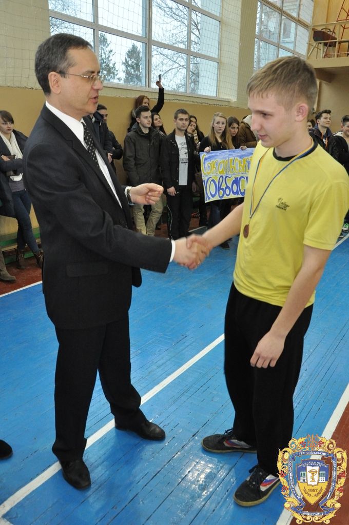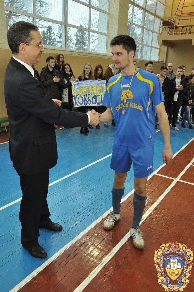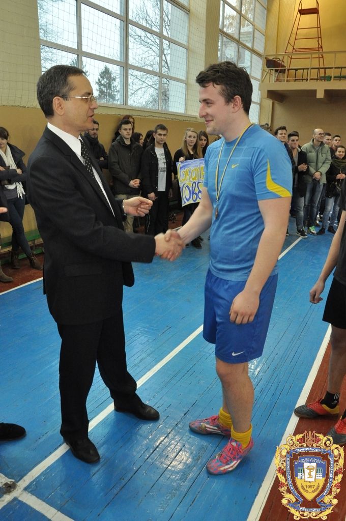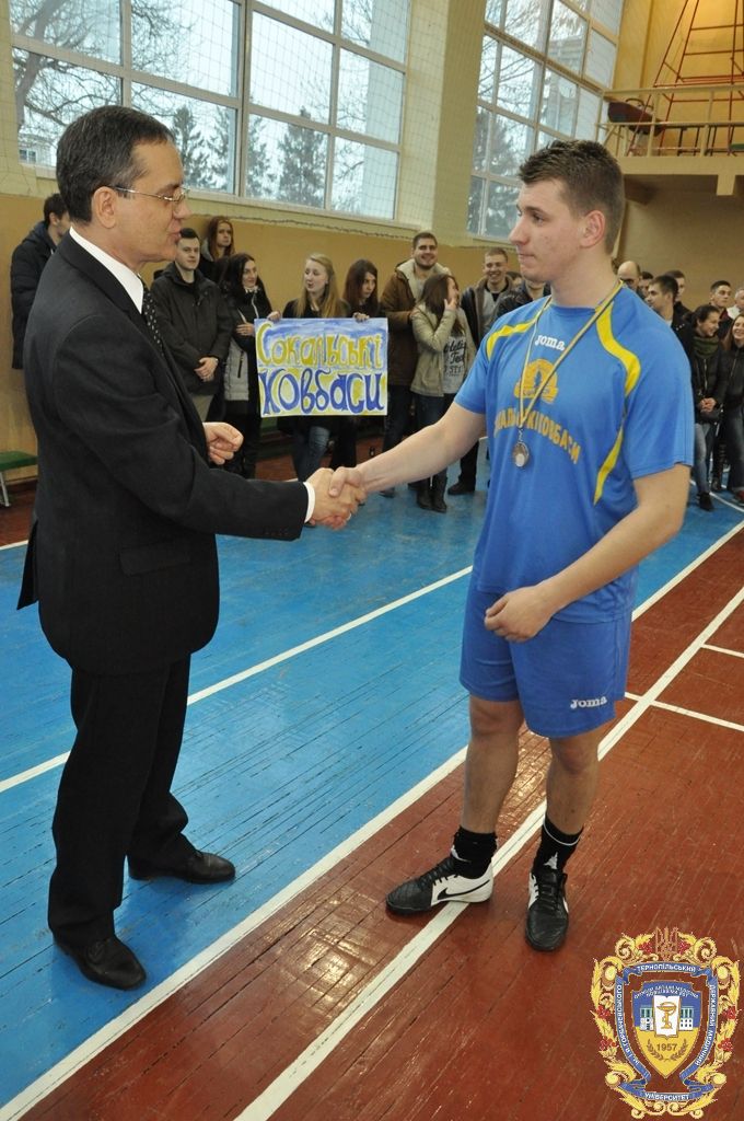 Три команди отримали від ректора ТДМУ, професора Михайла Корди кубки і медалі за перемогу у турнірі. Отже, третє місце виборола команда студентів першого курсу медичного факультету.