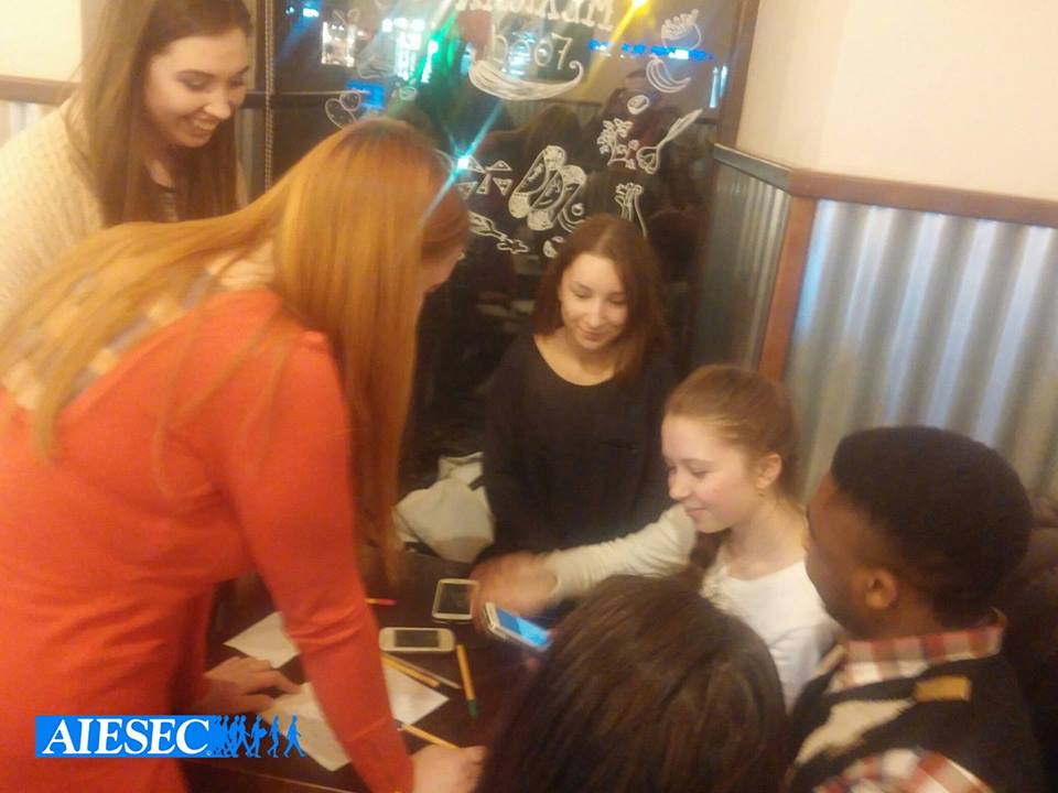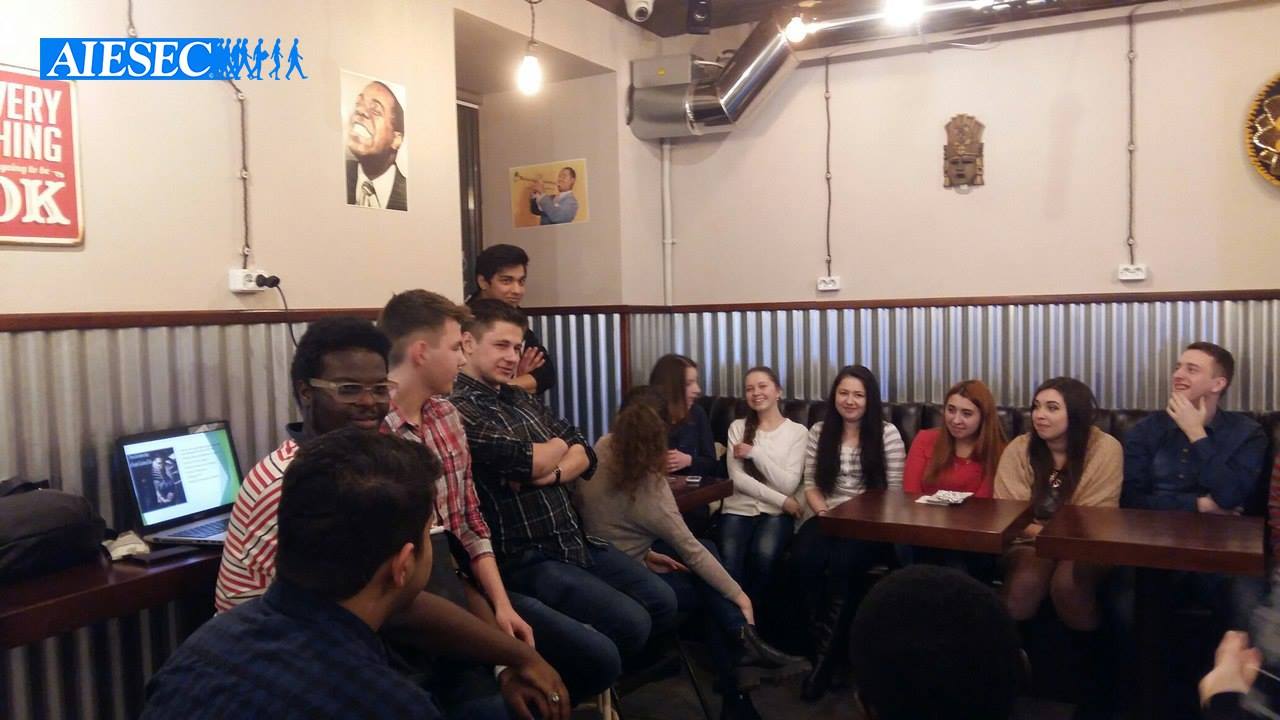 Отже, щосереди в нашому місті відбувається засідання English Speaking Club у компанії однодумців і ровесників. Дружня бесіда, яка тривала упродовж останньої зустрічі, не залишила нікого байдужим, всі охочі могли висловити свою думку. Як зазначають учасники «AIESEC», приємним є те, що до організації такого заходу долучилися студенти-іноземці ТДМУ. Одним із постійних спікерів є Taiwo Olayinka. Цього разу на зустріч прийшли студенти з Єгипту, Нігерії, Пакистану та Судану. Нові обличчя в клубі створили особливу атмосферу та зацікавили усіх учасників. Молодь розмовляла на різні актуальні теми, що дало змогу подивитися на ті чи інші питання по-новому.