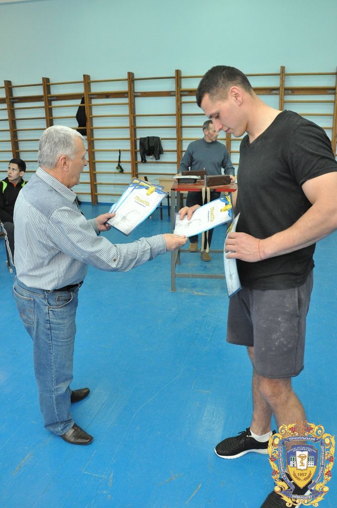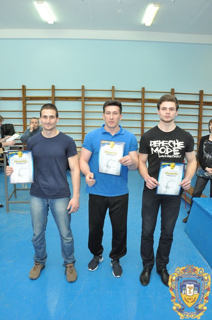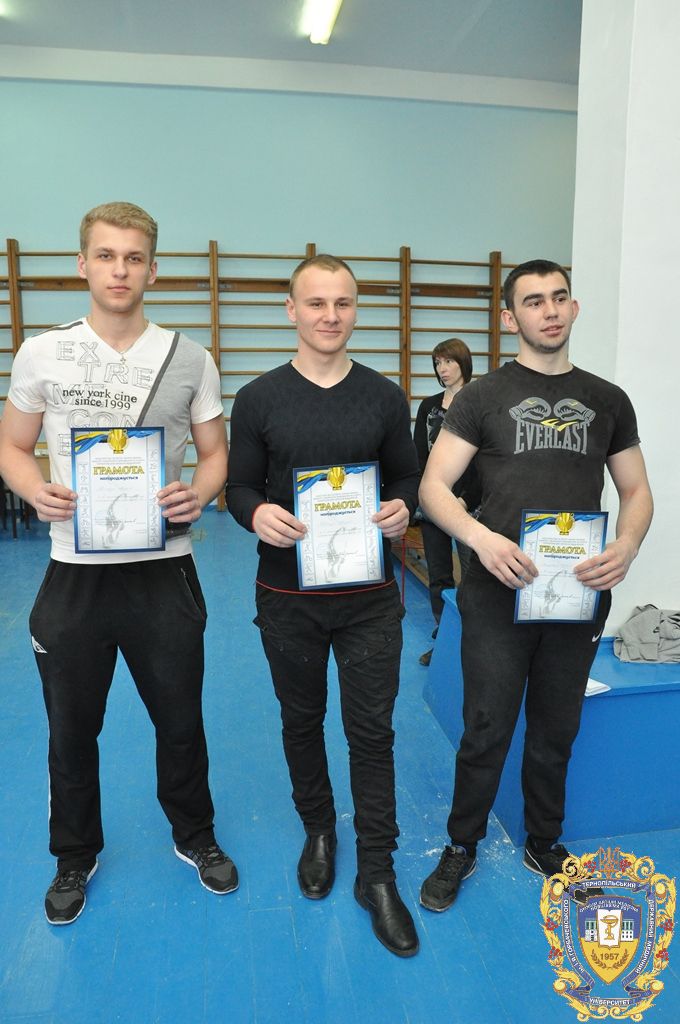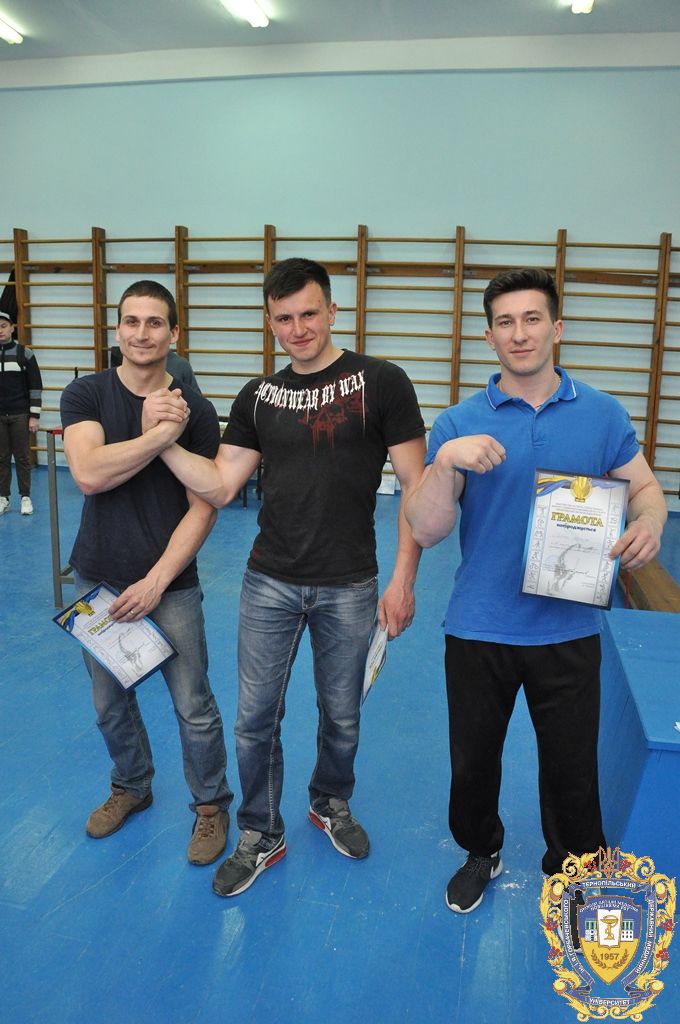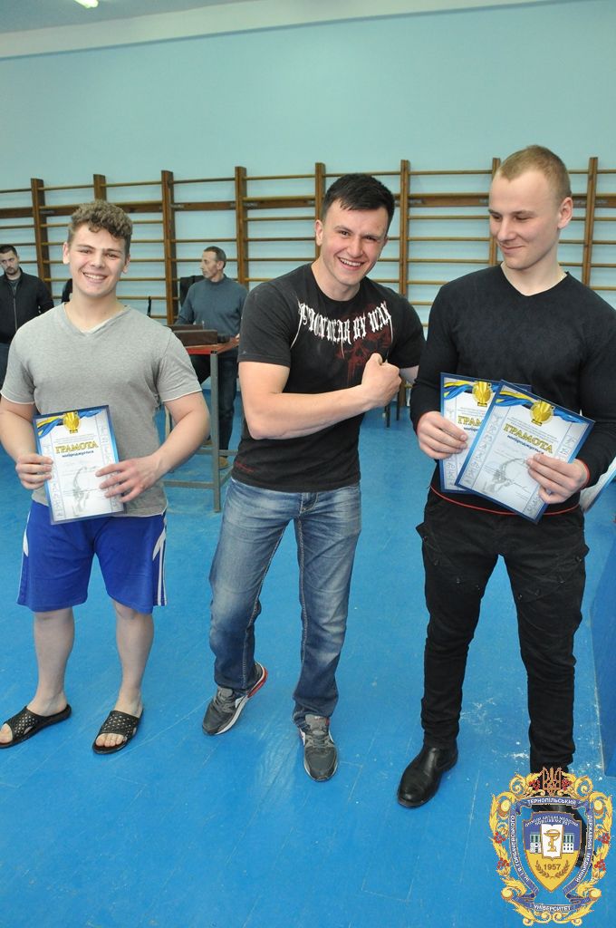 Серед 11 студентів-спортсменів, які представляли ТДМУ, відзначилися: капітан команди Микола Снітко (другий курс медичний факультет), який виборов перше місце на праву руку у ваговій 80 кілограм, Андрій Терещук (другий курс медичний факультет) – перше місце на праву руку і третє місце на ліву руку у ваговій категорій 90 кілограм, Роман Фомін (третій курс медичний факультет) – друге місце на праву руку і друге місце на ліву руку у ваговій категорії 100 кілограм, Іван Воронюк (другий курс медичний факультет) – друге місце на ліву руку і третє місце на праву руку у ваговій категорії 100+, Андрій Ткачук (другий курс медичний факультет) – третє місце на ліву руку у ваговій категорії 70 кілограм, Юрій Винарчик (перший курс медичний факультет, спеціальність «Здоров’я людини») – третє місце на праву руку у ваговій категорії 90 кілограм.