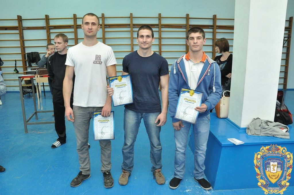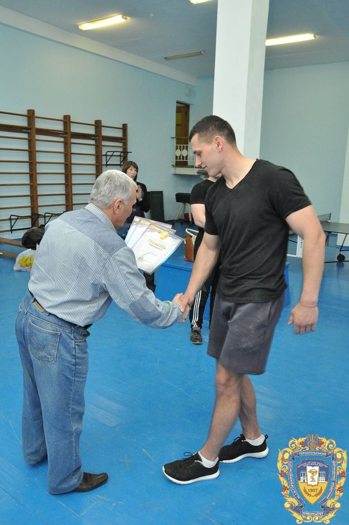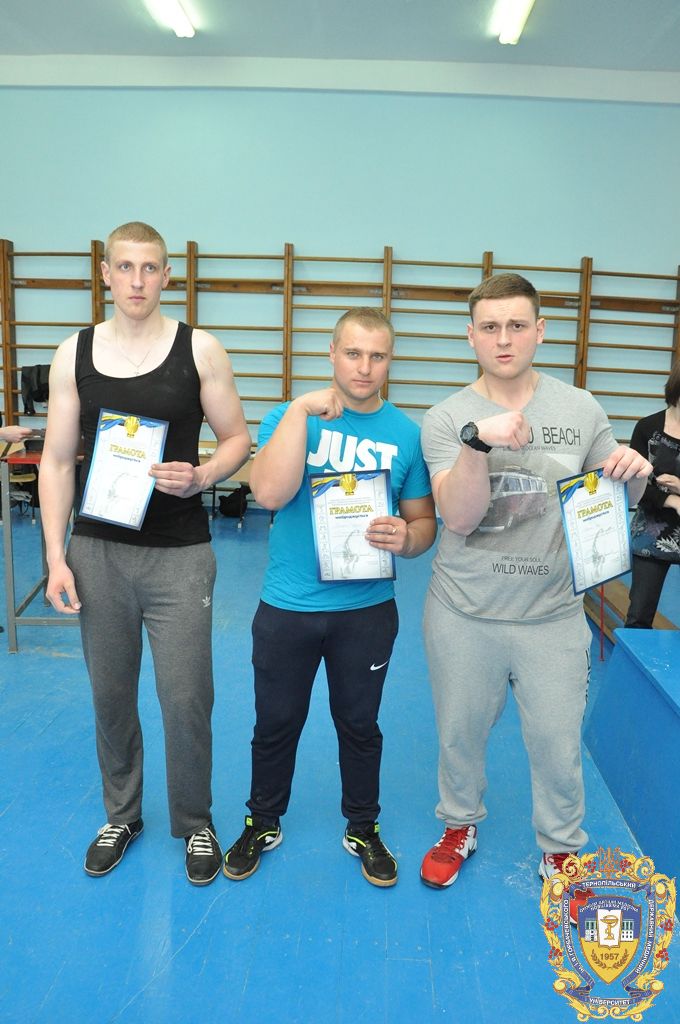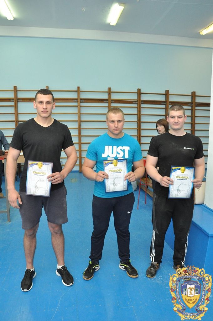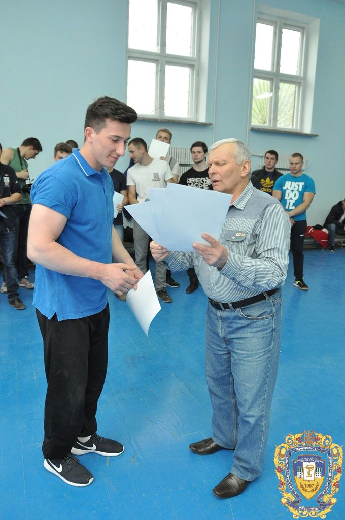 Серед 11 студентів-спортсменів, які представляли ТДМУ, відзначилися: капітан команди Микола Снітко (другий курс медичний факультет), який виборов перше місце на праву руку у ваговій 80 кілограм, Андрій Терещук (другий курс медичний факультет) – перше місце на праву руку і третє місце на ліву руку у ваговій категорій 90 кілограм, Роман Фомін (третій курс медичний факультет) – друге місце на праву руку і друге місце на ліву руку у ваговій категорії 100 кілограм, Іван Воронюк (другий курс медичний факультет) – друге місце на ліву руку і третє місце на праву руку у ваговій категорії 100+, Андрій Ткачук (другий курс медичний факультет) – третє місце на ліву руку у ваговій категорії 70 кілограм, Юрій Винарчик (перший курс медичний факультет, спеціальність «Здоров’я людини») – третє місце на праву руку у ваговій категорії 90 кілограм.
