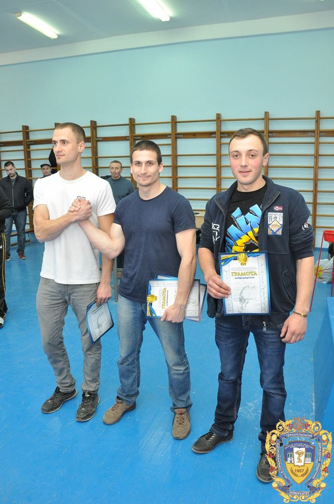 Турнір проводився у 5 вагових категоріях (70, 80, 90, 100, 100+ кілограм) на праву та на ліву руку, в якому взяли участь 30 студентів. Учасники команди ТДМУ здобули чимало особистих перемог у цих змаганнях. Вони боролися до останнього і здаватися ніхто не був налаштований. Саме тому наші хлопці порадували усіх своїми медалями.