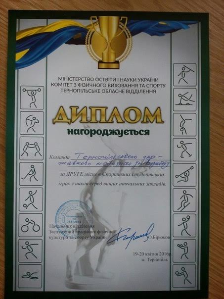 Цього року студенти Тернопільського державного медичного університету імені І.Горбачевського постійно радують перемогами і спортивними здобутками. Учора, 19 квітня, наша команда здобула друге місце у змаганнях з шахів, які відбулися в рамках Літньої універсіади серед ВНЗ III-IV рівня акредитації.