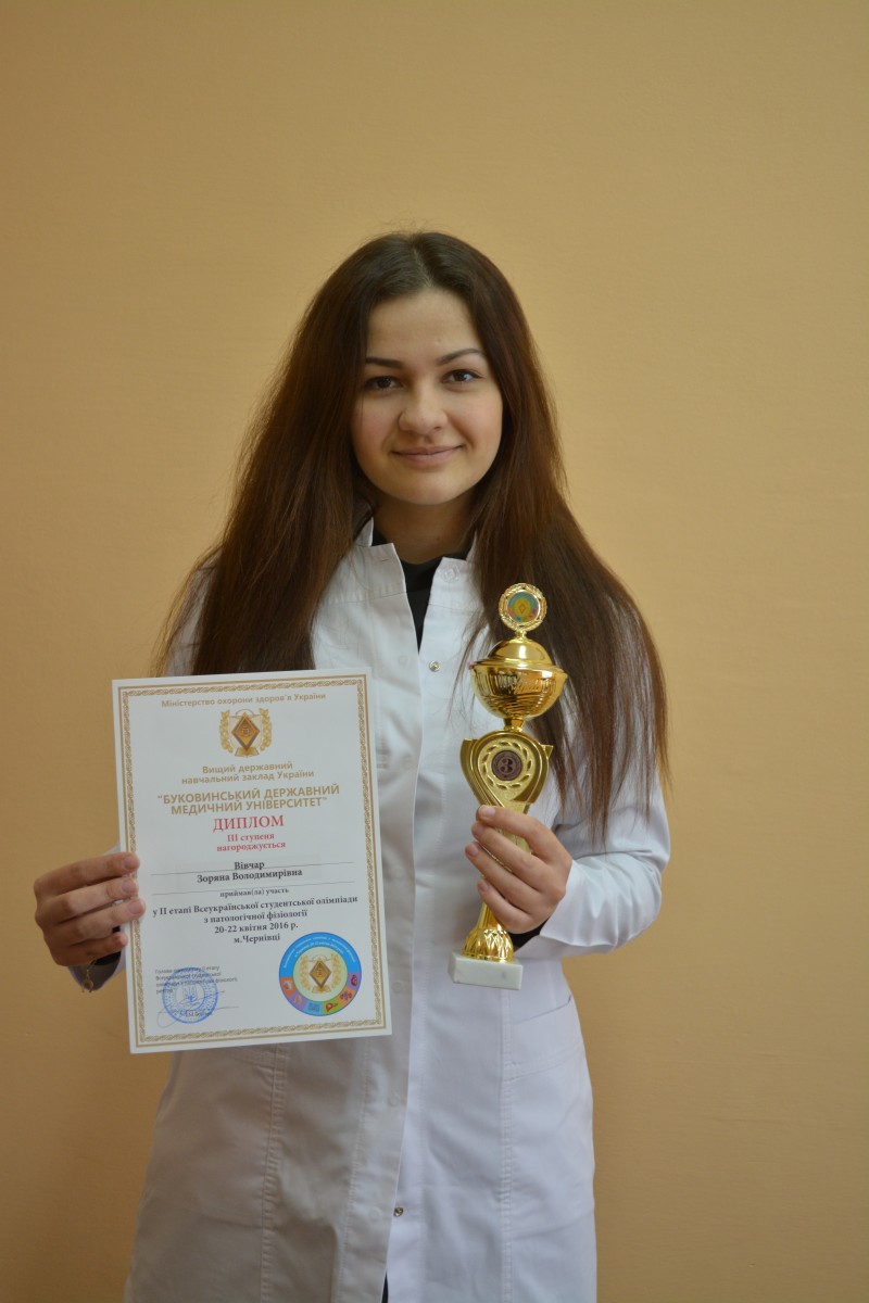 Тернопільський державний медичний університет імені І.Я.Горбачевського представляла студентка 10 групи третього курсу медичного факультету Зоряна Вівчар, яка виборола третє місце.