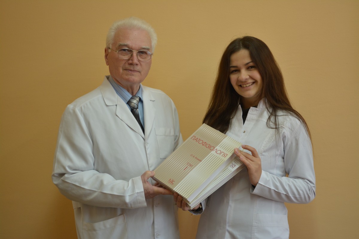 У подяку за високі досягнення та для поглиблення своїх знань кафедра патологічної фізіології відзначила здобутки студентки врученням підручника О.В.Атамана.