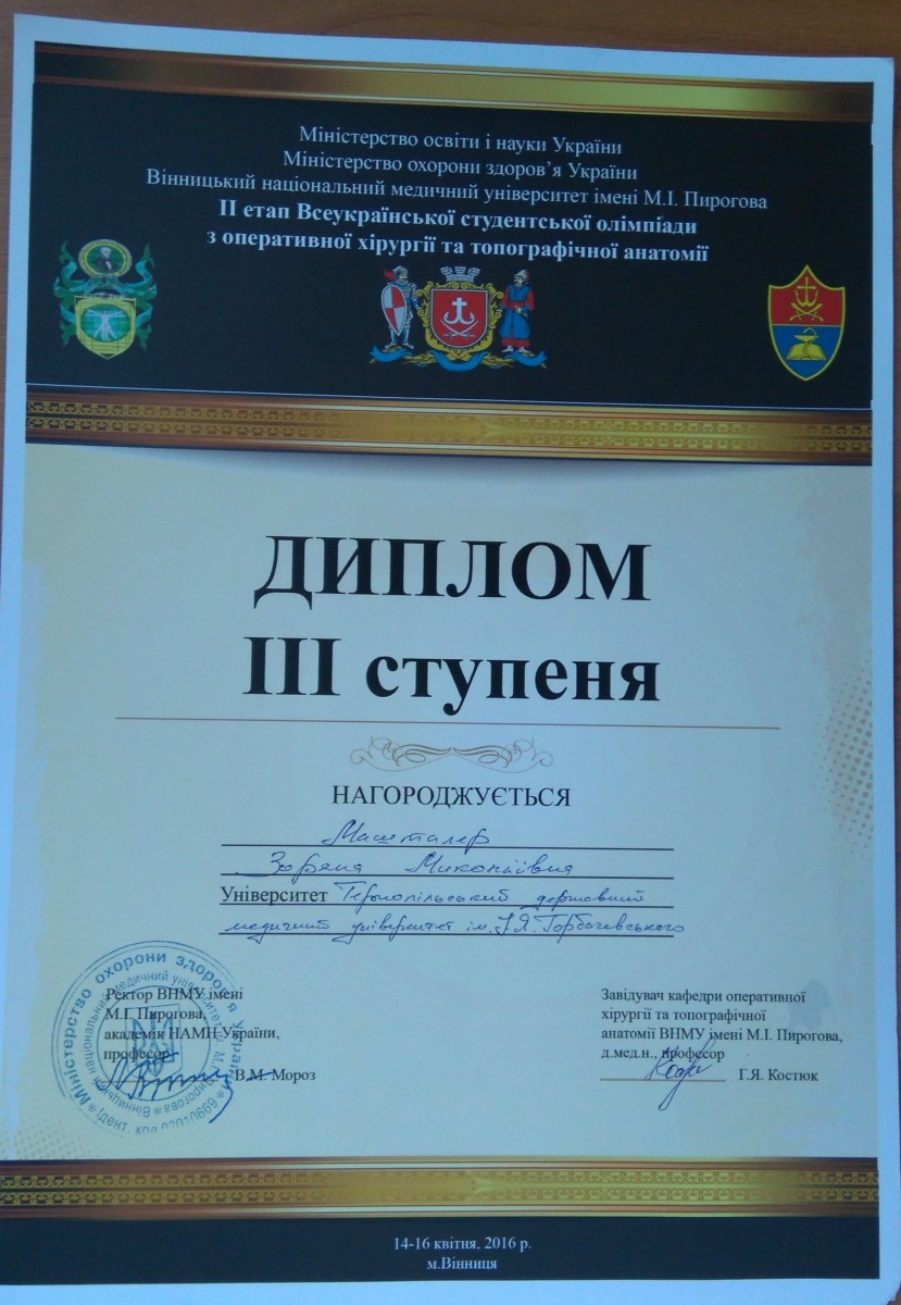 Студентка ТДМУ посіла третє місце в олімпіаді з оперативної хірургії та топографічної анатомії