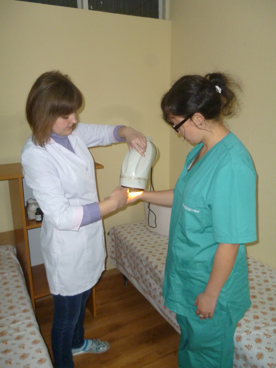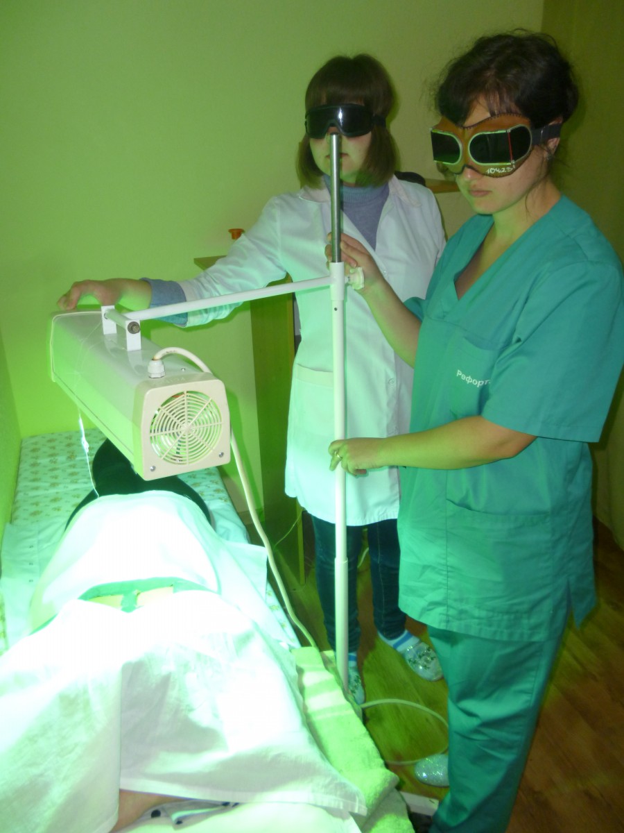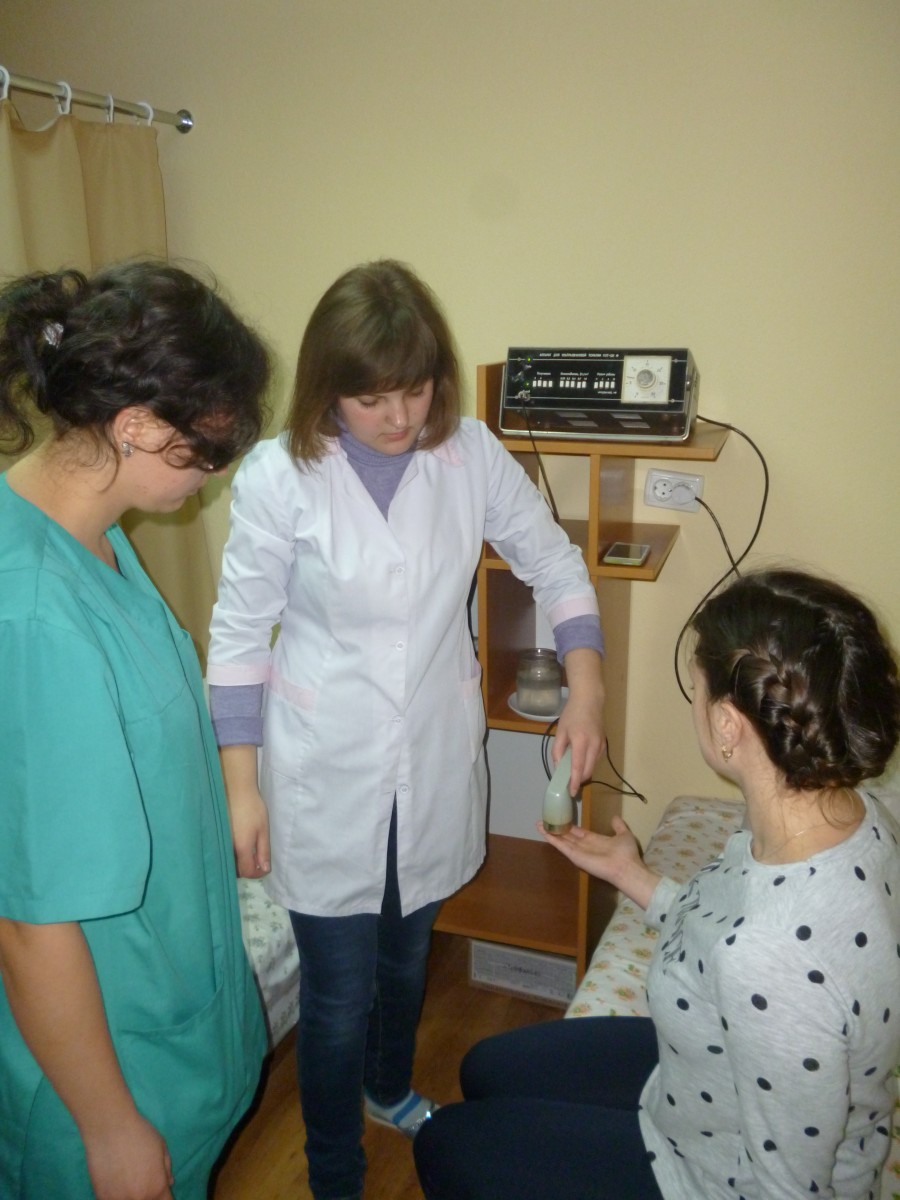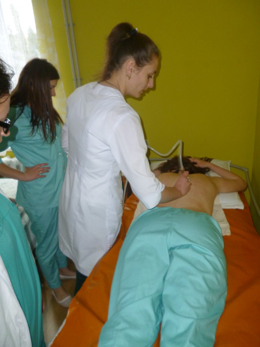 Майбутні випускники стажувалися на базі фізіотерапевтичного відділення вищезгаданого медичного закладу, в якому відпрацювали навички з проведення реабілітації за допомогою природних лікувальних факторів. Вони детально ознайомилися з роботою фізіотерапевтичного кабінету, в якому опанували проведення процедур гальванізації, ампліпульсотерапії, дарсонвалізації, індуктотерапії УВЧ\СВЧ-терапії, магнітотерапії, лазотерапії, в барокамері, за допомогою електротерапевтичного апарату «Seragem» та апарату для вакуумного масажу. Студенти також мали можливість практикуватися у відділені теплолікування. Тут вони самостійно здійснювали торфогрязеві, парафіно-озекеритні аплікації, гальваногрязеві процедури, рапні обгортання.